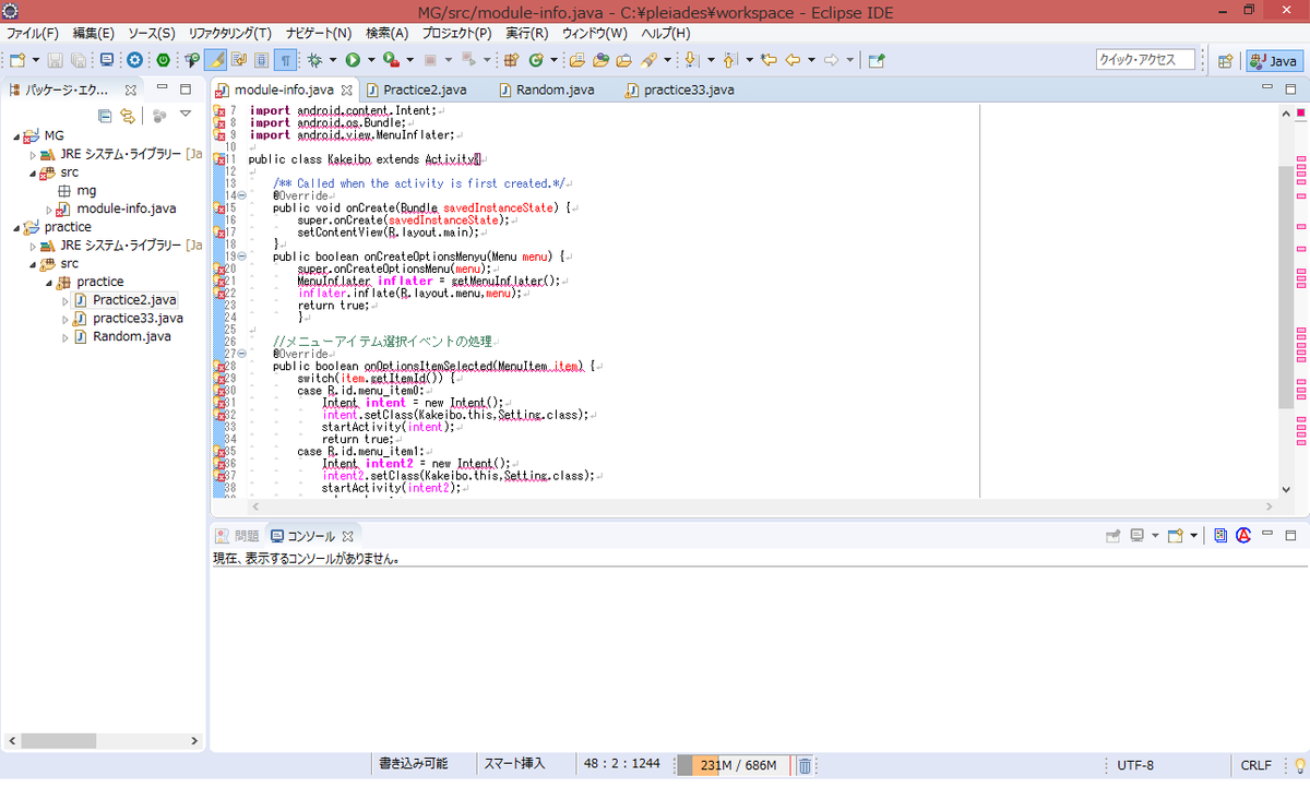 そういえば初めに「public class Practice2」なんちゃらとか